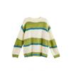 Zielony Pasiasty Sweter Damski Blokowanie Kolorów Okrągły Dekolt Długi Rękaw Pulower Ciepła Odzież Wierzchnia Kobieta Jesienny Top