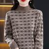 Sweter z półgolfem Damski Jesienno-zimowy Kwiatowy Casualowy Sweter Dzianinowy Top Modny Luźny Duży Pulower
