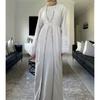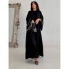 2025 Middle East Indonesia Boutique Embroider Fashion Tassel Cuff Pure Color Cardigan Dubai Arab Robe Dress