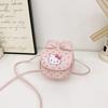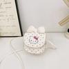 This children's crossbody bag features a cute cartoon cat design with a bow, crafted from moisture-resistant, durable polyester material. Measuring approximately 11*10*5.5cm deep, it offers lightweight storage for small essentials. Ideal for daily outings and school activities, it supports organized carrying while reducing load. Wipe clean with a damp cloth for maintenance.