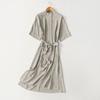 Foreign Trade Export Brand Original Order Fashion Simple Lace-up Waist Hugging Slimming Stand Collar Short sleeve Dress Large Size