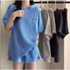 Women's Summer Waffle Embroidered Two-Piece Set: Loose Short Sleeve Top & Shorts