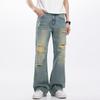 Męskie Dżinsy z Nadrukiem Proste Spodnie Męskie Dżinsowe Spodnie na Guzik Kieszenie Streetwear High Street Średni Stan Dziura Łączone
