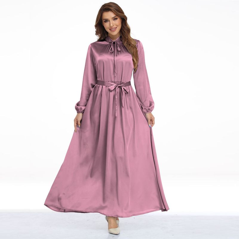 New Fashion Indonesia Middle East Dubai Satin Long Skirt Waist Artificial Silk Large Hem Long Dress Dress