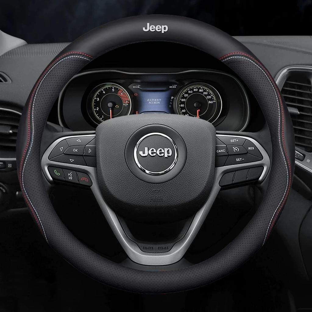 Product Name: QiuFu Leather Steering Wheel Cover for Jeep, M 38 cm, Anti-Slip, Breathable, Sweat-Absorbent, Fits 36.5–37.9 cm