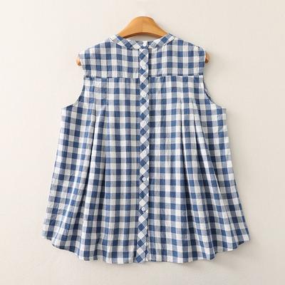 Japanese and Korean Hong Kong Style Summer Gingham Pure Color round Neck Nail Pearl A- line Ruffles Sleeveless Shirt Tops Doll Shirt for Women