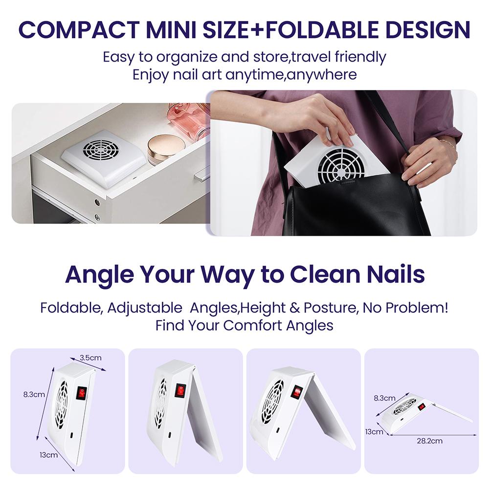 Bezprzewodowy pochłaniacz pyłu do paznokci Składany ekstraktor pyłu do paznokci Mini ładowalny odkurzacz do paznokci Wentylator Maszynka do manicure do zdobienia paznokci