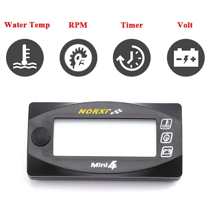 Motorcycles water temperature VoltageTime RPM Tachometer Norxi Mini 4 in 1 LED Digital Display Quad meter