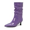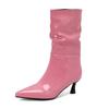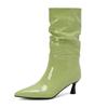 Kozaki marszczone Damskie Kozaki do połowy łydki ze skóry lakierowanej Szpiczasty nosek Dziwne buty 2024 Jesień Zima Obuwie