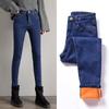 Fleece and thickened jeans women's new winter high-waisted thin elastic outer wear tight pants