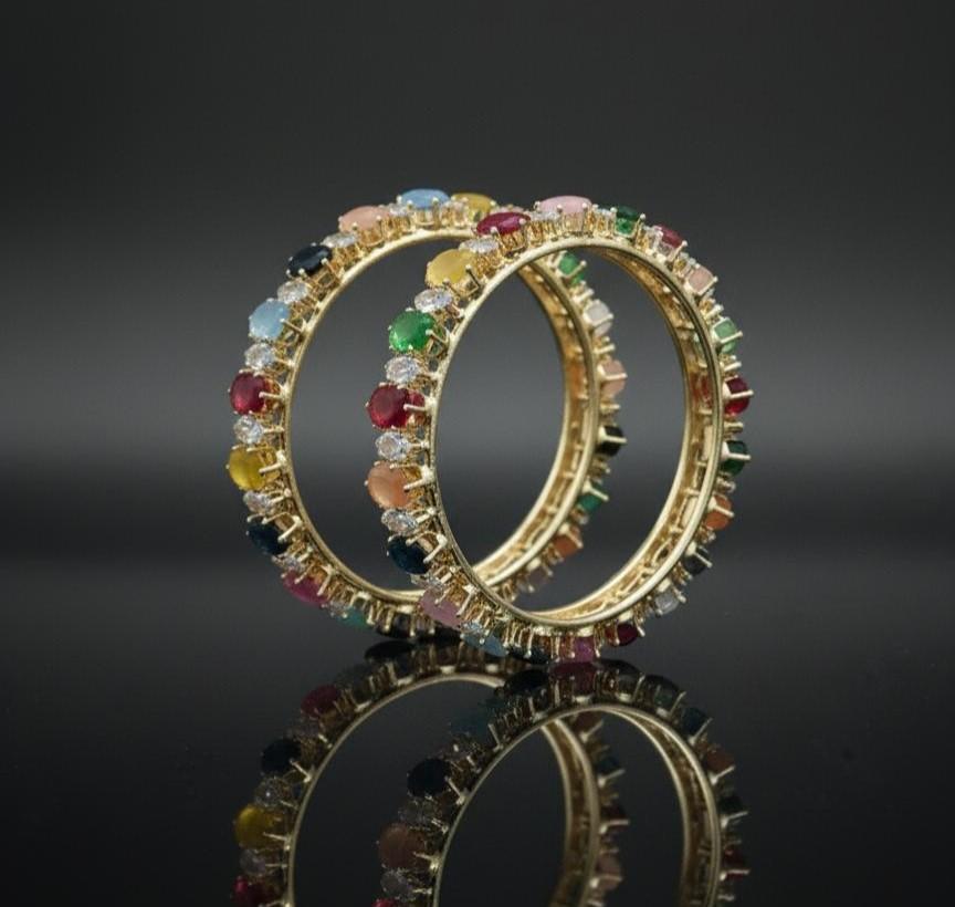Eleganckie pozłacane bransoletki z wielokolorowymi kamieniami szlachetnymi, tradycyjna indyjska biżuteria dla kobiet