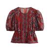 Kaslead New Arrival Women's Clothing Fashion Style Stylish Simple and Versatile round Neck Waist Trimming Print Tops