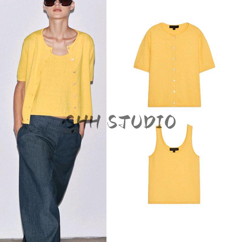 Easiest for Match Short Sleeve Knitting Outwear 3471032 Plain Stitch round Neck Wide Shoulder Strap Simple Casual Top 3471030
