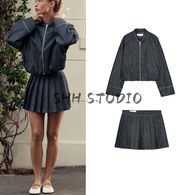 Balloon Version Denim Pilot Jacket Outwear 2152576 Wide Pleated Denim Skirted Leggings 2154576