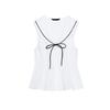 Spring and Summer New Women's Clothing Nautica Style V Neck Sleeveless Contrast Color Bows Trim Poplin Tops 3152006