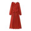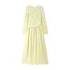 Summer New Arrival Women's Clothing Fashion Style Fashion All-Matching Temperament Leisure Pleating Long Sleeves round-Neck High Waist Dress