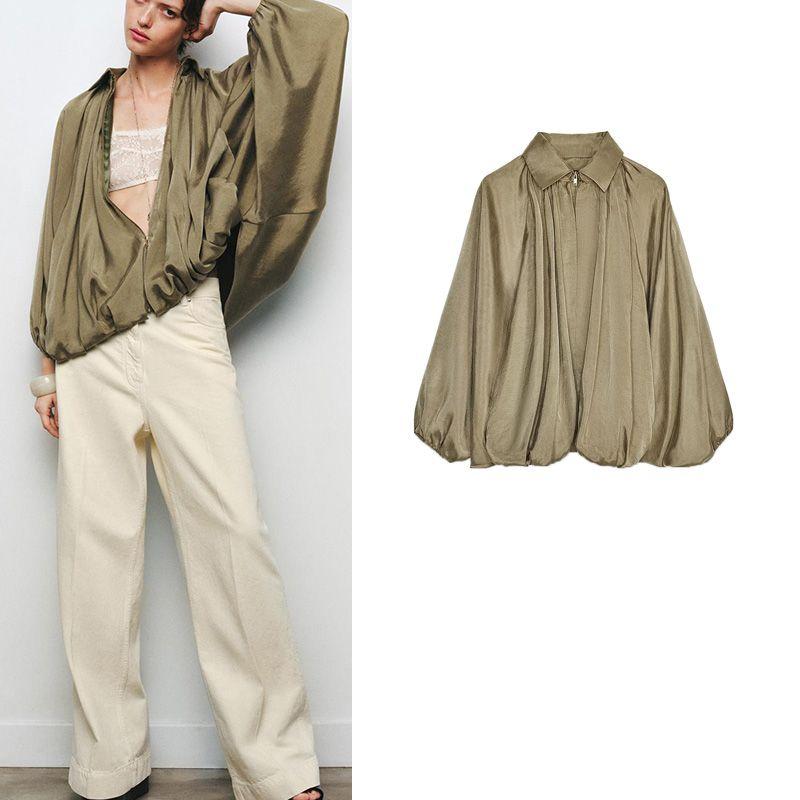 Spring New Women's Clothing Lapel Long Sleeves Ruched Hem Puffy Pilot Jacket Outwear 2814404