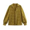 Kaslead New Arrival Women's Clothing Fashion Style Fashion Minimalist Texture V-neck Lantern Sleeve Shirt