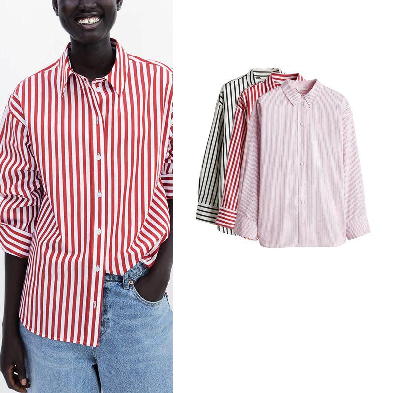 Summer New Women clothes Loose Fashion Simple and Comfortable Lapel Stripe Long sleeve Shirts Top 1265984