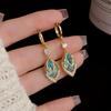 Eleganckie nausznice z cyrkoniami i liściastymi frędzlami - minimalistyczne kolczyki w stylu Y2K dla kobiet