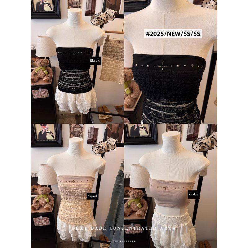 Kumikumi Pure Desire Style Suit Tube Top Women's Summer Slim Fit Inner Wear Sleeveless Lace Vest Two-Piece Set