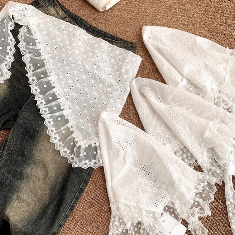 Triangle Headscarf Embroidered Lace Neck Scarf Sweet Headband Retro Lace Trim Scarf Women Summer Travel Po Belt Accessories