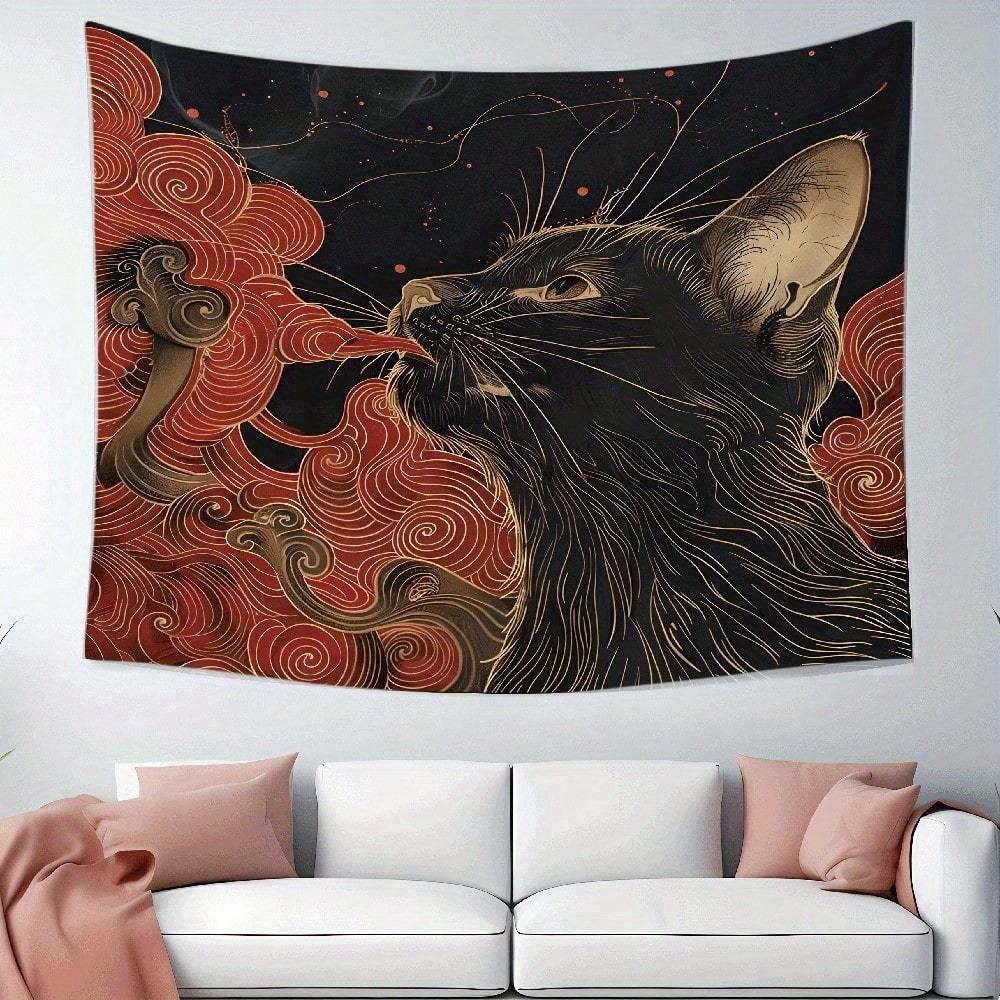 1 szt. Azjatycka Sztuka Ukiyo Japoński Kot Połykający Chmury Fala Tkanina Zabawna Gobelin Wiszący na Ścianę z Akcesoriami, Wystrój Ściany Domu Pokoju w Domu Akademickim Sypialni