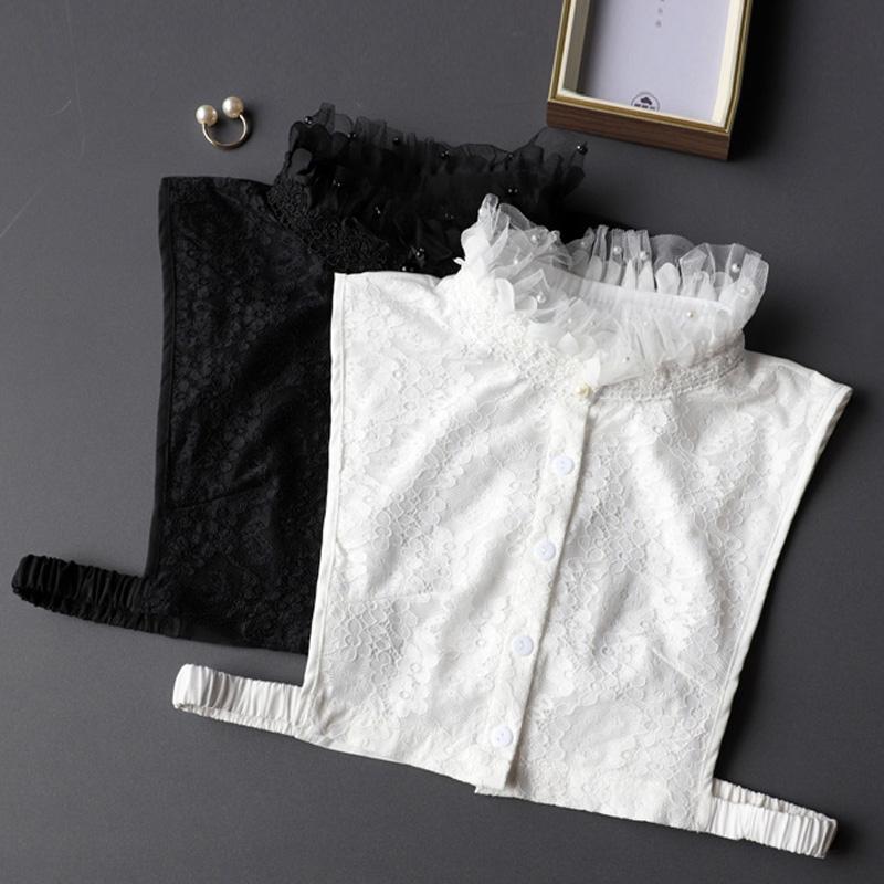 Biały Koralikowy Damski Kołnierzyk Koszuli Stojący Fałszywe Kołnierzyki Kobieta Czarny Odpinany Kołnierzyk Koronkowy Vintage Połowa Koszuli Sztuczny Koł