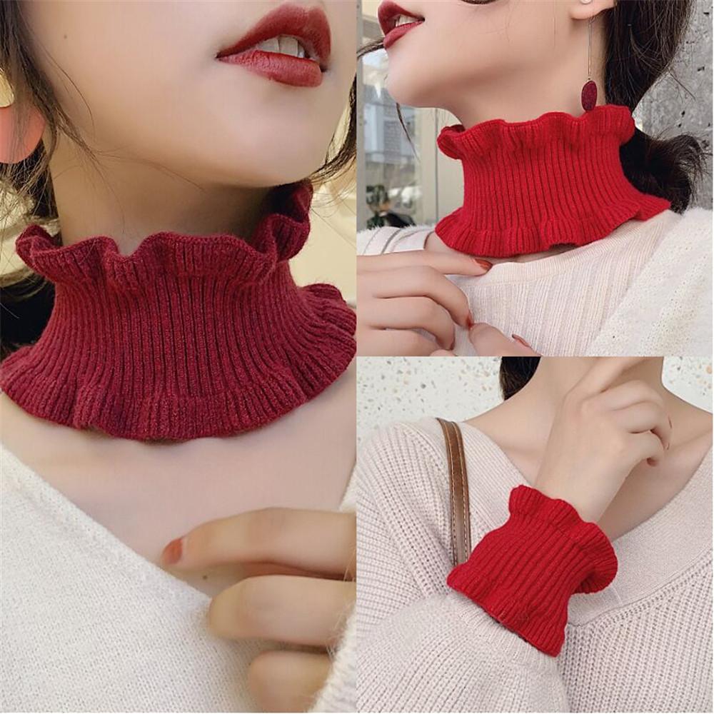 Damski Fałszywy Kołnierz Sweter Szalik Dzianinowy Elastyczny Fałszywy Kołnierz Szalik Ciepły Zimowy Rowerowy Wiatroodporny Falbany Odpinane Kołnierzyki