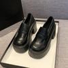 Mokasyny jesień 2025 nowe uniwersalne grube podeszwy gruby obcas czarne okrągłe główki wodoodporne małe skórzane buty damskie wysokie obcasy