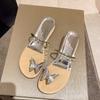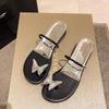 Nowe pantofle Mary Jane z kokardą z cyrkonii, sandały plażowe, casualowe wakacyjne pantofle zewnętrzne, buty damskie
