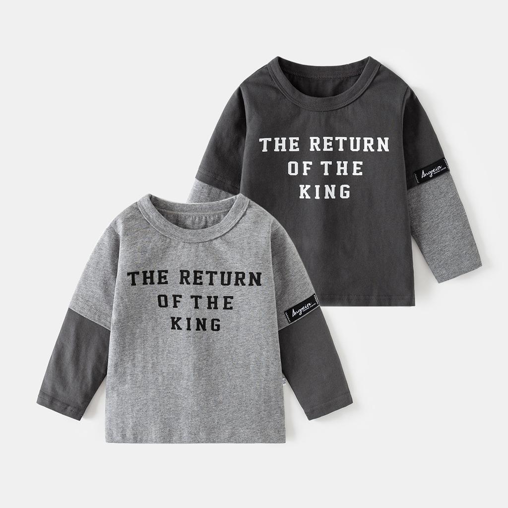 Chłopięca koszulka z długim rękawem z czystej bawełny jesień nowa odzież dziecięca dziecięca niemowlęca udawana dwuczęściowa koszulka bazowa top