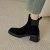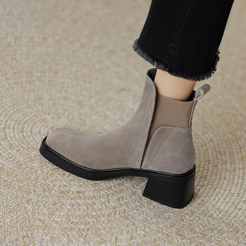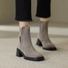 Nowe szare elastyczne botki damskie proste kwadratowy nosek gruby obcas wysoki obcas botki Martin matowy zamsz botki
