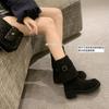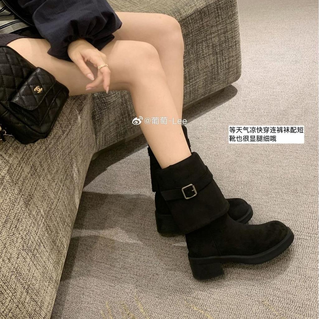 Grape mother wears the same style in two ways~ foldable thick heel buckle belt round head western pile boots women's thick-soled knight boots