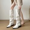 Niszowy design, skośny obcas, szpiczaste, skórzane, ocieplane kozaki, kozaki rycerskie 2025 jesień i zima, temperament, wszechstronne, wyszczuplające kozaki