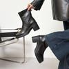 Wersja ze skóry bydlęcej~ Skórzane buty na grubym obcasie, kwadratowy nosek, w stylu brytyjskim, czarne, plisowane botki damskie jesienno-zimowe, elastyczne, cienkie, buty typu Martin