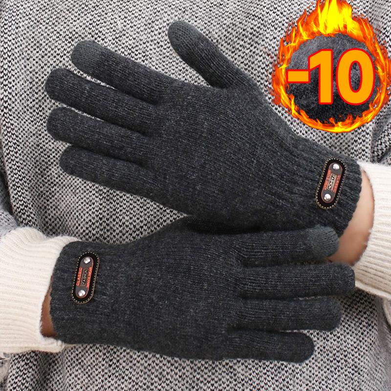 Rękawice outdoorowe ocieplane męskie jesienno-zimowe ciepłe wiatroodporne dzianinowe z ekranem dotykowym pięciopalcowe do jazdy z polaru termiczne sportowe