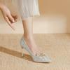 Champagne wedding shoes main wedding dress show two wear toast crystal shoes bride shoes gold engagement stiletto high heels women