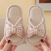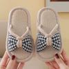 Dziecięce kapcie materiałowe lniane dziewczęce cztery pory roku urocze w kratkę kokardka domowe antypoślizgowe miękkie dno niemowlęce kapcie podłogowe