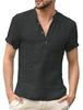 Men's Summer Cotton Linen Short Sleeve Stand Collar Button-Up Shirt