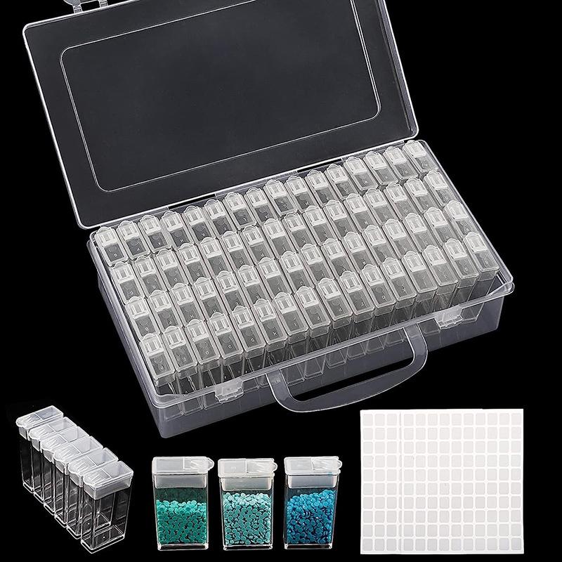 Przezroczysty pojemnik do przechowywania koralików z 64 przegródkami do malowania diamentami DIY i zdobienia paznokci