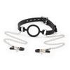 Silicone O-ring Gag with Nipple Clamps - Black Bondage Set