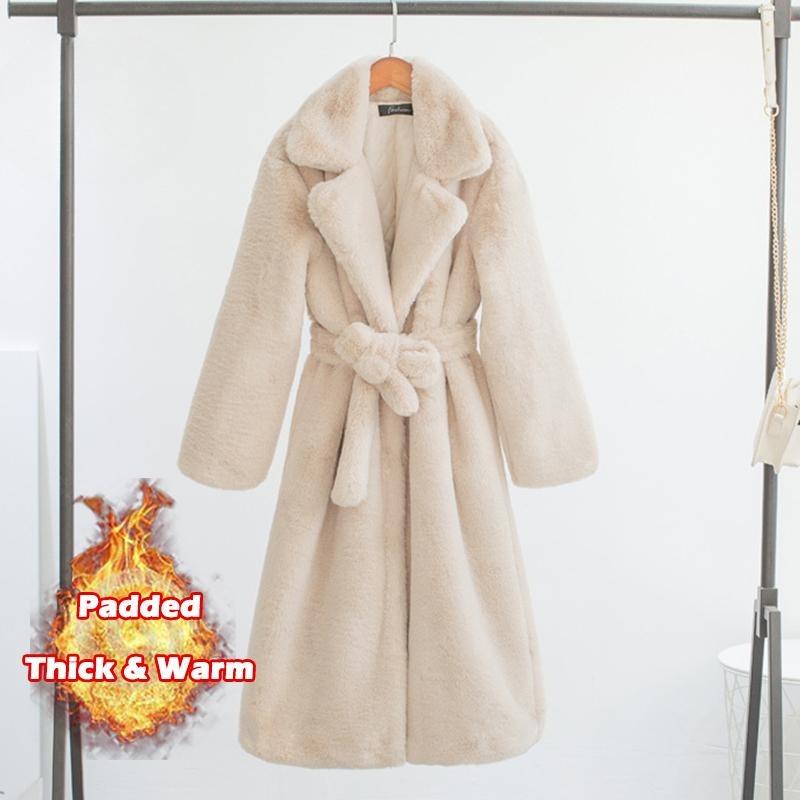 Damski zimowy ciepły płaszcz ze sztucznego futra gruby damski długi płaszcz skręcić w dół kołnierz damski ciepły płaszcz z paskiem Casaco Feminino