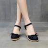 Odkryj doskonałe połączenie stylu i komfortu dzięki tym damskim sandałom na koturnie w koreańskim stylu. Wykonane z wysokiej jakości lnu jako materiału wierzchniego, te sandały oferują przewiewny i elegancki wygląd. Szpiczasty nosek dodaje elegancji, a sprzączka zapewnia bezpieczne dopasowanie.. Podeszwa z TPR zapewnia doskonałą trwałość i przyczepność, a tekstylna wyściółka zwiększa komfort podczas długotrwałego noszenia.. Idealne na każdą okazję, te sandały z pewnością staną się podstawą Twojej garderoby.