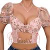 Cross-Border Hot-Selling Puff Sleeve Sexy Floral Crop Top with Underwire, Gathered Drawstring Waist Lace Blouse