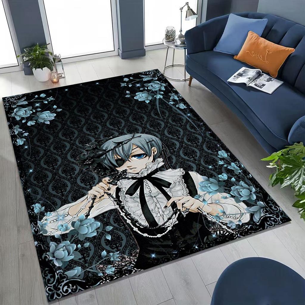 Anime Black Butler Sebastian Ciel Cartoon Cartoon Rug for Bedroom Living Room Sofa Home Doormat Decor,Kids Non-slip Floor Mat