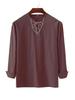 Odkryj idealne połączenie komfortu i stylu dzięki tej luźnej męskiej koszuli z długim rękawem. Wykonany z wysokiej jakości bawełny i lnu, obiecuje miękkie i przewiewne doświadczenie przez cały dzień.. Stójka dodaje nuty wyrafinowania, a jednolity kolor bez wysiłku uzupełnia każdą garderobę.. Sznurek przy dekolcie zapewnia regulowane dopasowanie, czyniąc go wszechstronnym wyborem na różne okazje.. Niezależnie od tego, czy ubierasz się elegancko, czy stawiasz na luz, ta koszula to niezbędny element Twojej garderoby.