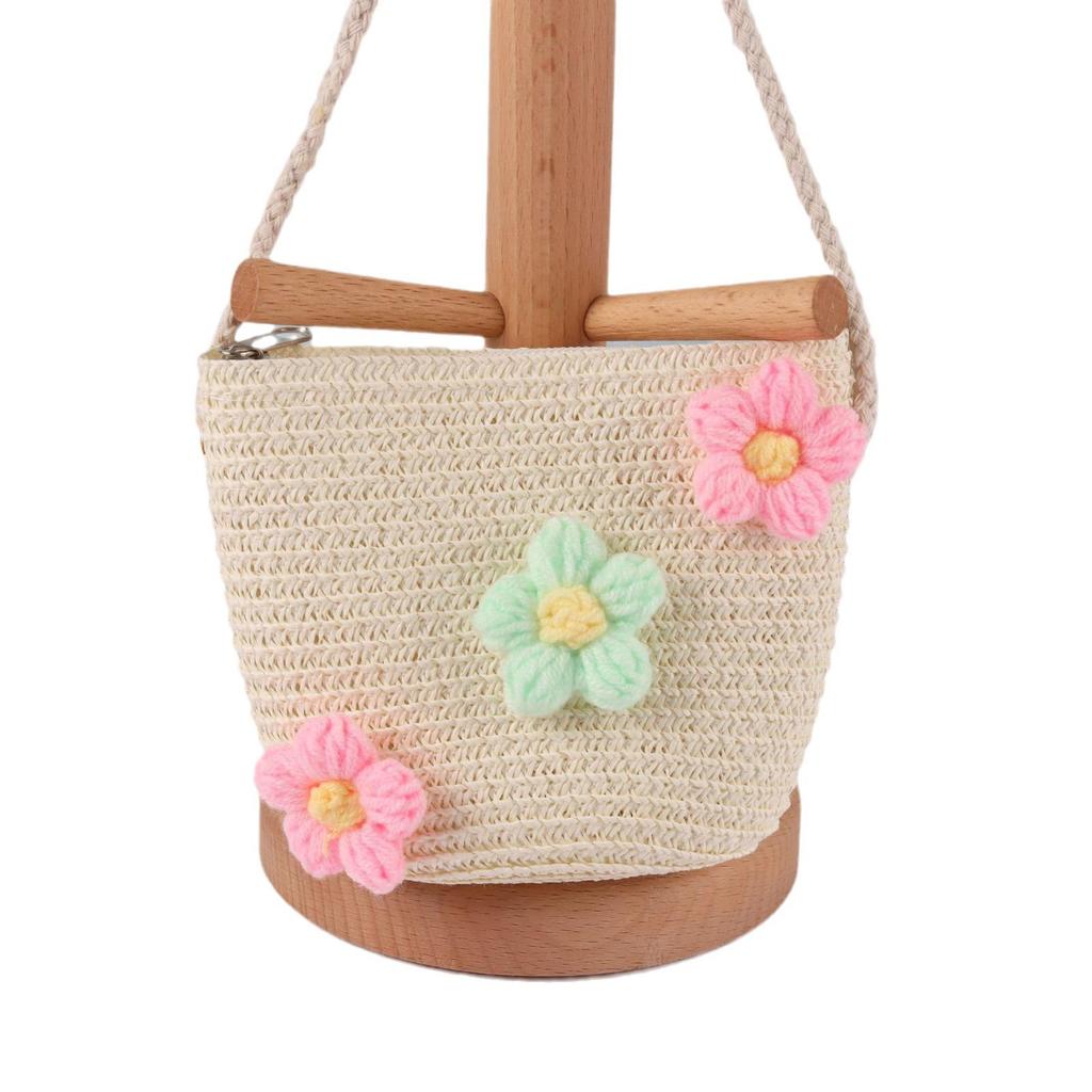 Modna pleciona torebka na ramię w stylu księżniczki, ręcznie wykonana ze słomy - Plecak plażowy dla dziewczynki