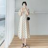 Letnia sukienka w kropki z dekoltem w kształcie litery V: Retro styl francuski z bufiastymi rękawami dla przyszłych mam.