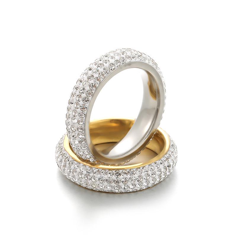 18k Gold-Plated Non-Fading Titanium Steel Ring with Diamond Inlaid 6mm Ceramic Clay